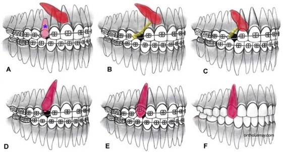Le traitement des canines incluses nécessite une étroite collaboration avec l'orthodontiste afin de préparer l' espace nécéssaire à la dent.